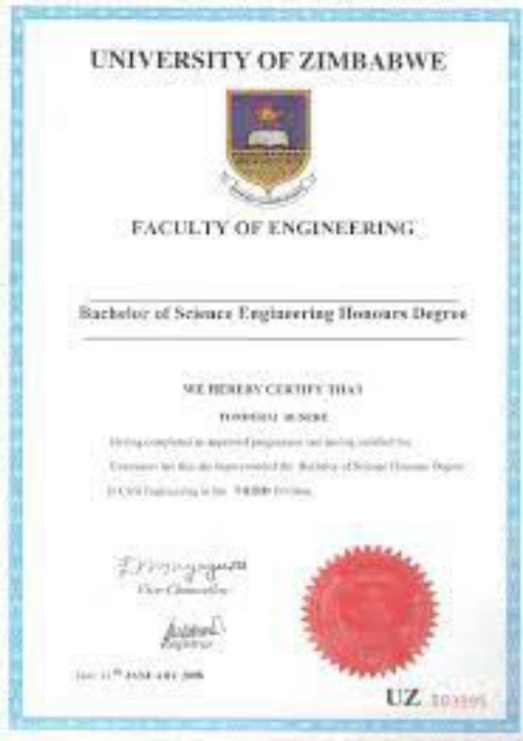 Buy PHD Honorary Doctorate Degree From the University of Zimbabwe